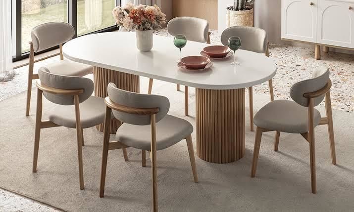 LİZBON 90*180 BEYAZ - CEVİZ MASA / LİZBON KREM - CEVİZ SANDALYE