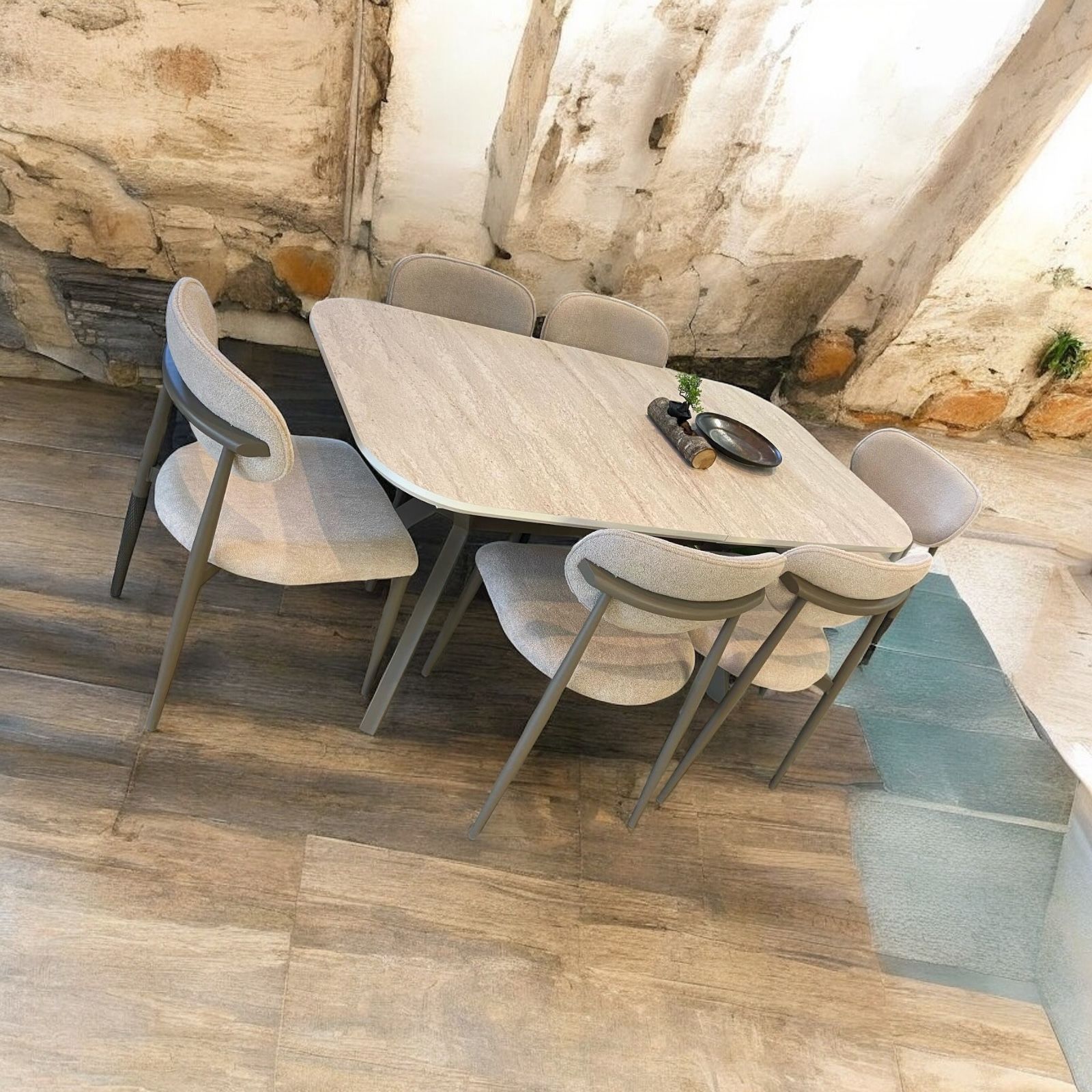 VALENTİNO 90*160 TRAVERTEN TAKIM LİZA SANDALYE